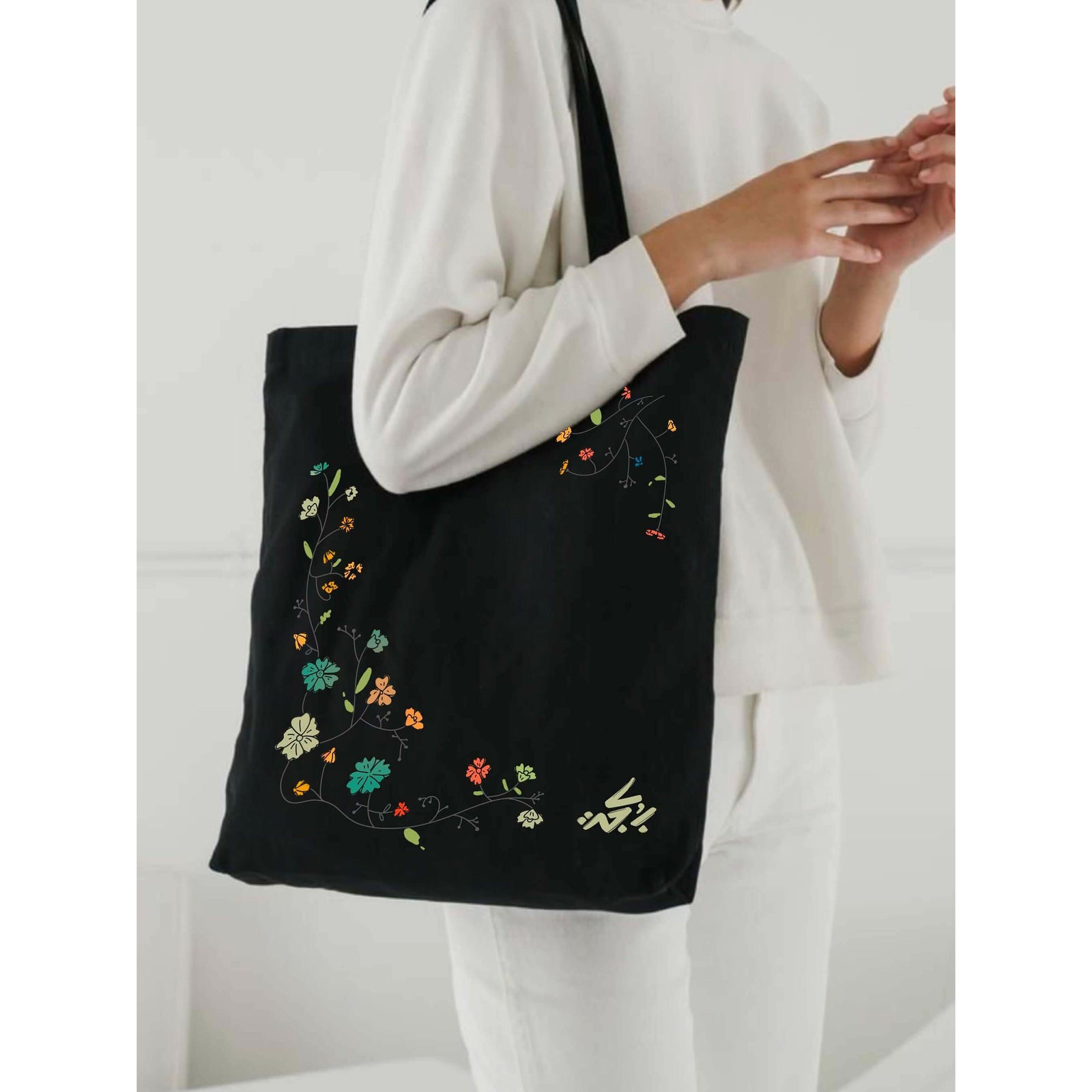 Vintage Flowers Black Tote Bag